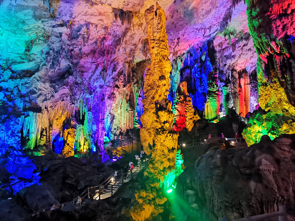 第三天早上,前往东江湖赏晨雾,负离子空气,新鲜与纯净,徒步间,人很自然地醉美于小东江。接着坐船游览东江湖,来到了兜率岩溶洞,完全进入了一个洞中有洞,洞洞相通,七转八拐,美仑美奂的溶岩迷宫。整个溶洞有着五颜六色的灯光照耀着,如同一座深藏地下的艺术宫殿,憾人心魄,真让人惊叹于大自然的鬼斧神工。